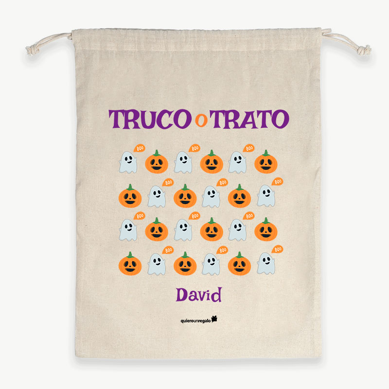Haz que la noche de Halloween sea aún más especial con nuestra bolsa personalizada de Halloween. Elige entre dos diseños temáticos y añade el nombre de quien la usará para un detalle para un detalle totalmente único. Ideal para guardar caramelos o juguetes durante la celebración, esta bolsa combina diversión, practicidad y personalización.